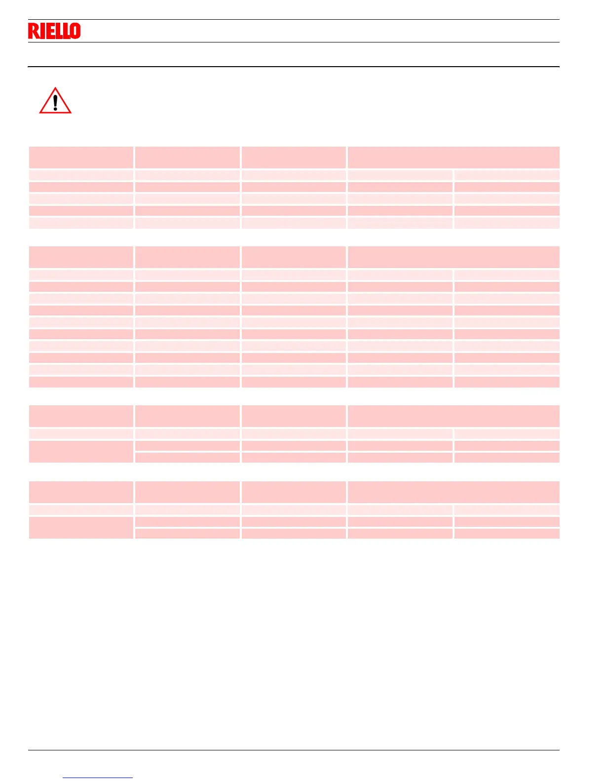 5.4 Burner adjustment table