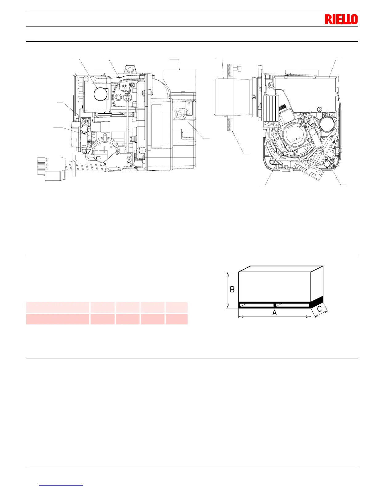 The weight of the burner complete with packaging is indicated in