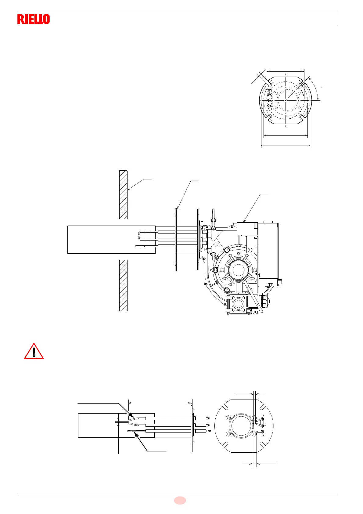 Before installing the burner on the boiler, make sure the probe and electrode are positioned cor-