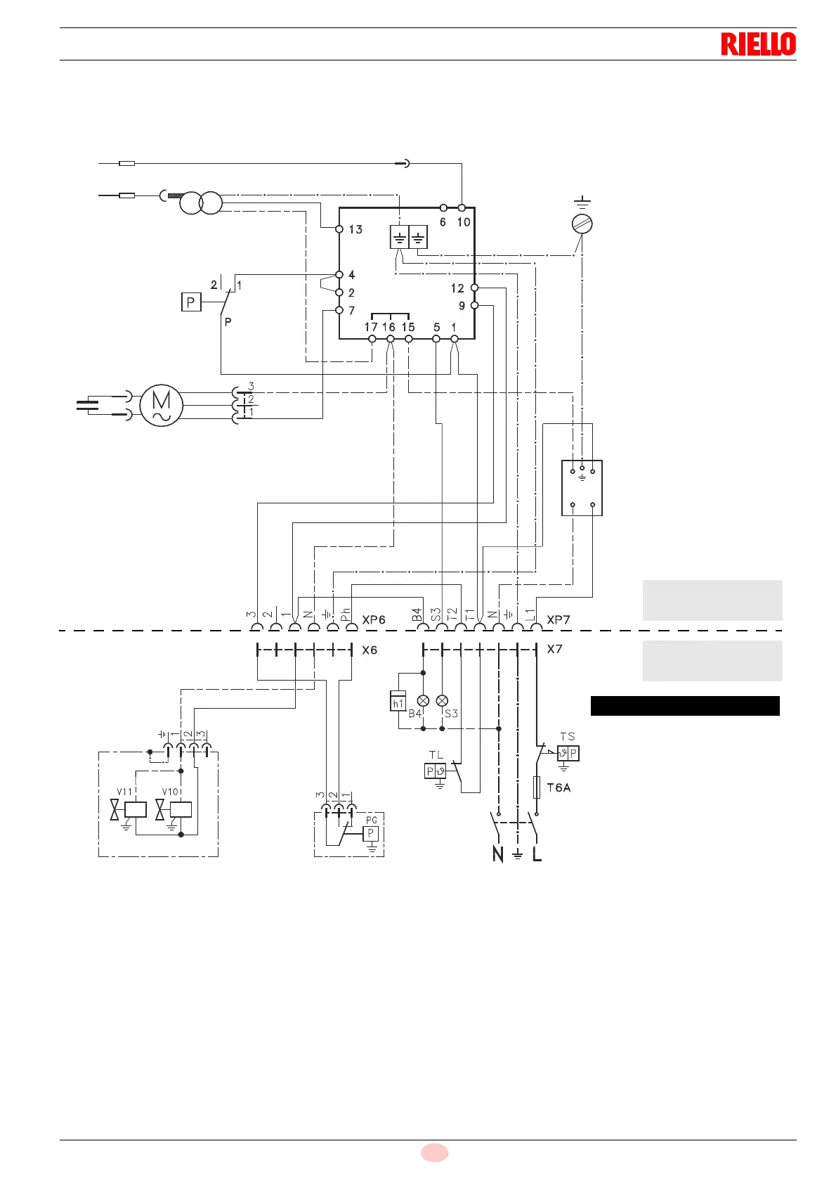 brander verzekerd door de limietthermostaat (TL) van de ketel. Indien dit niet het geval is moet er in serie met de limietther-