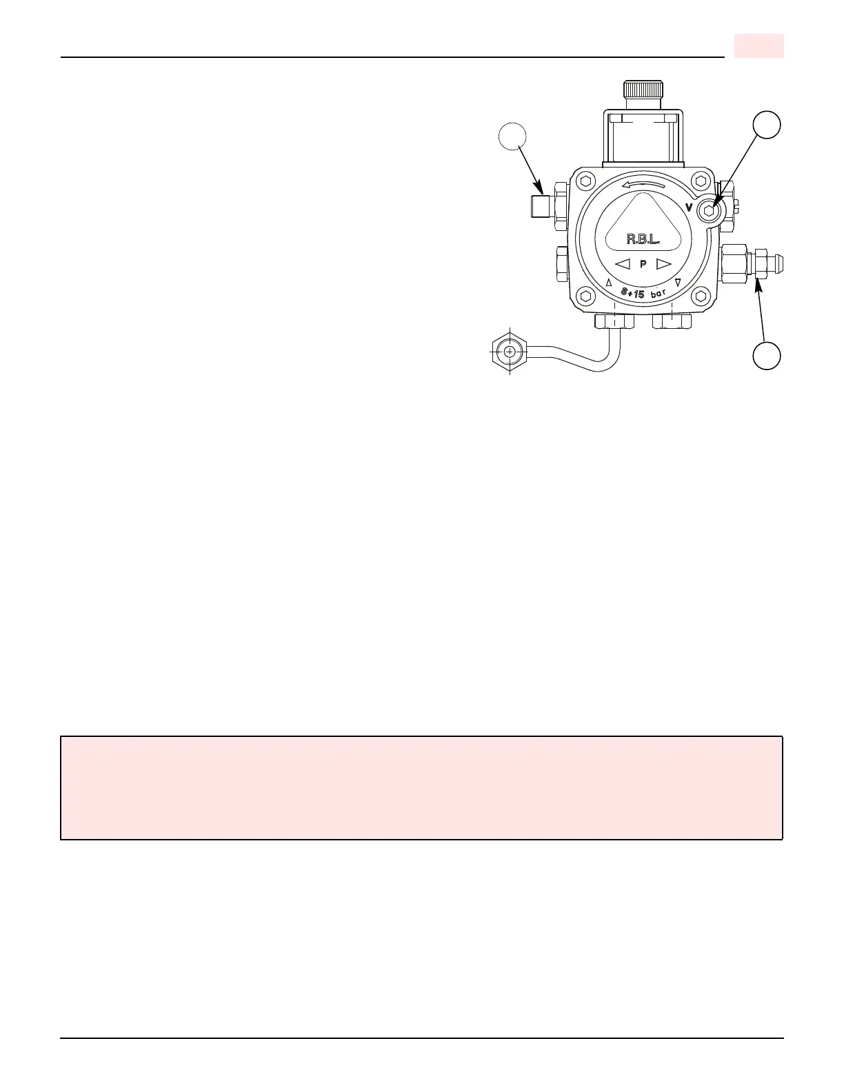 7) Run the burner until the fuel pump has been purged of air, then tighten the bleeder valve and immediately shut down