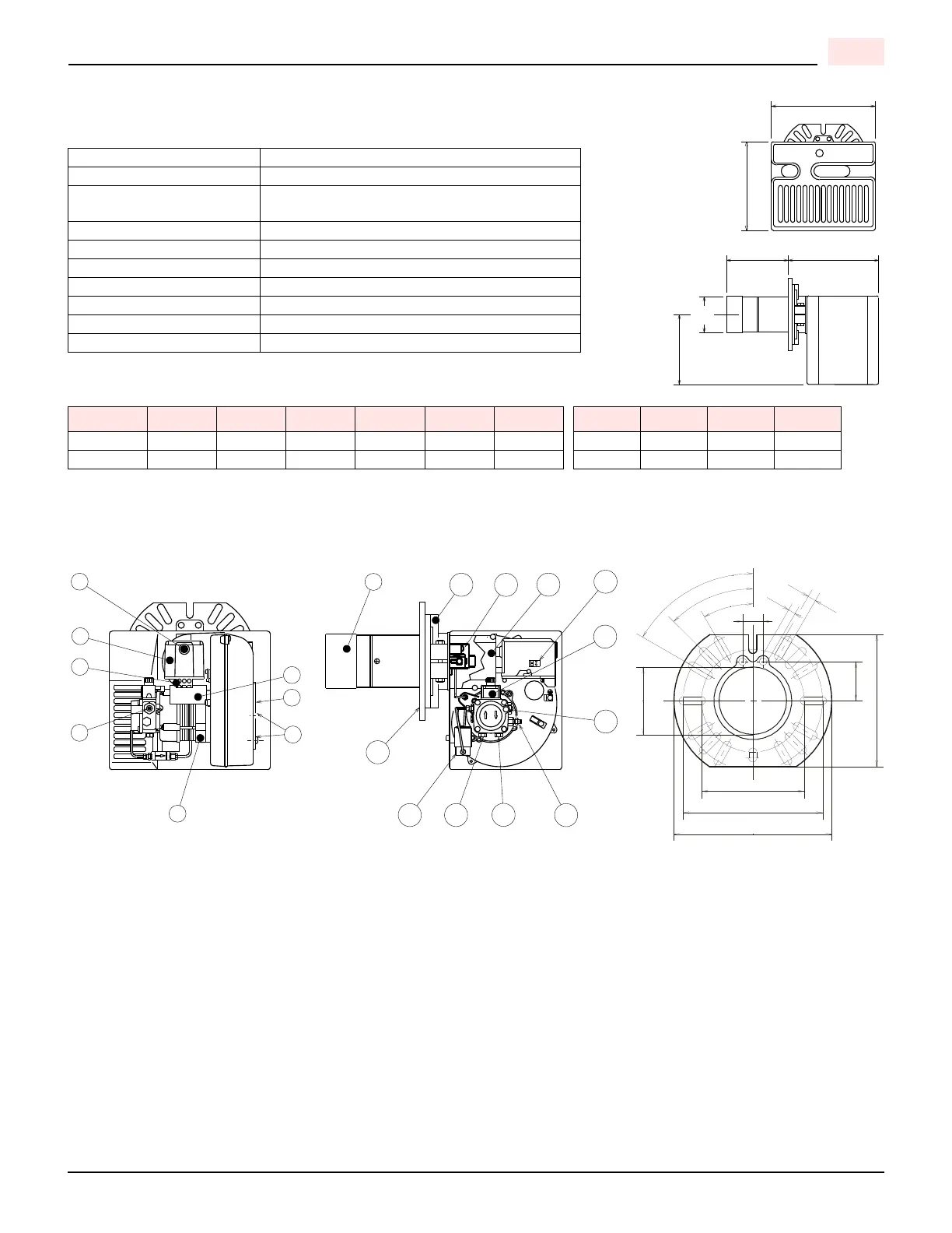 BURNER AND MOUNTING FLANGE DIMENSIONS