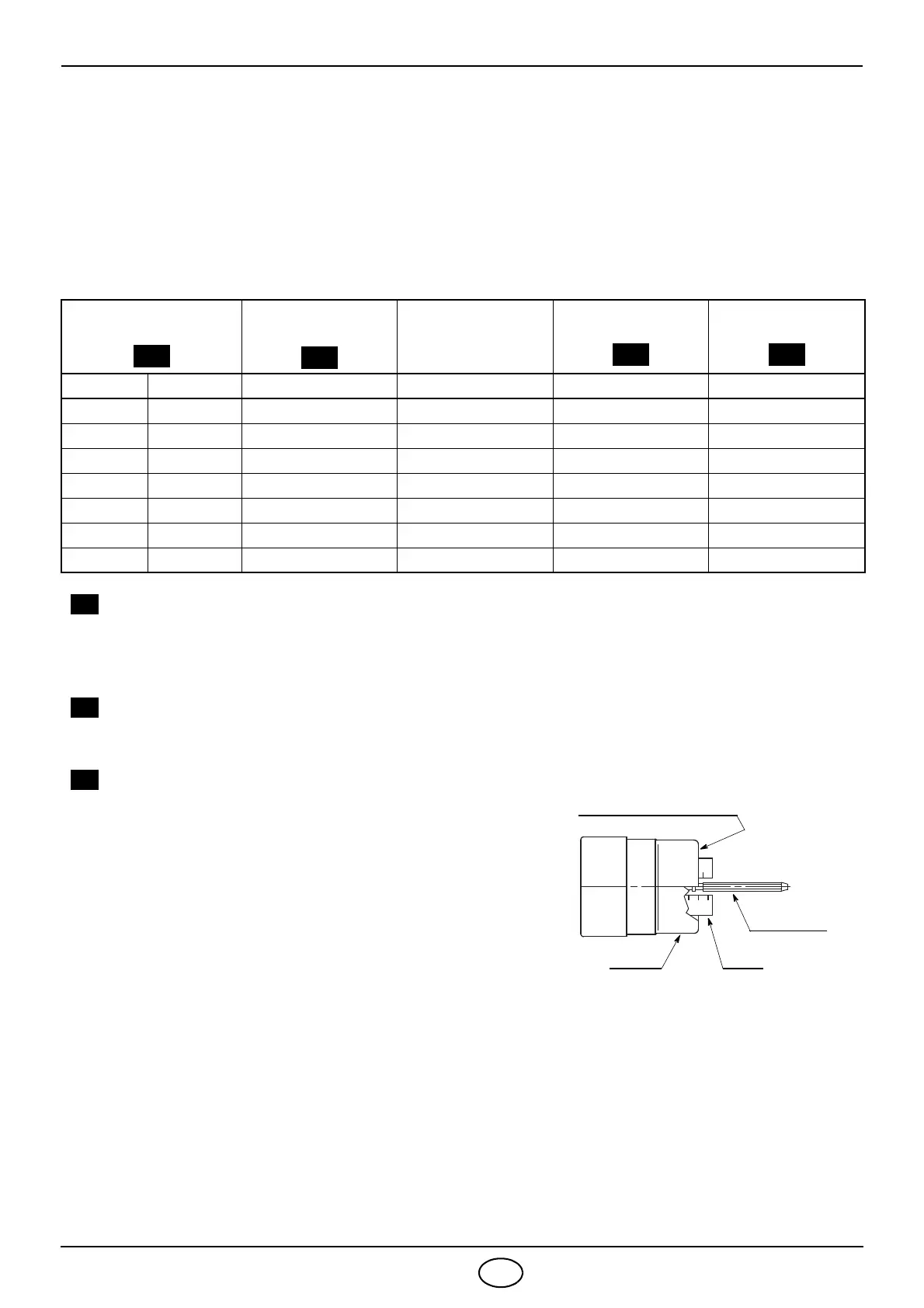 esterno del boccaglio come indicato in tabella.