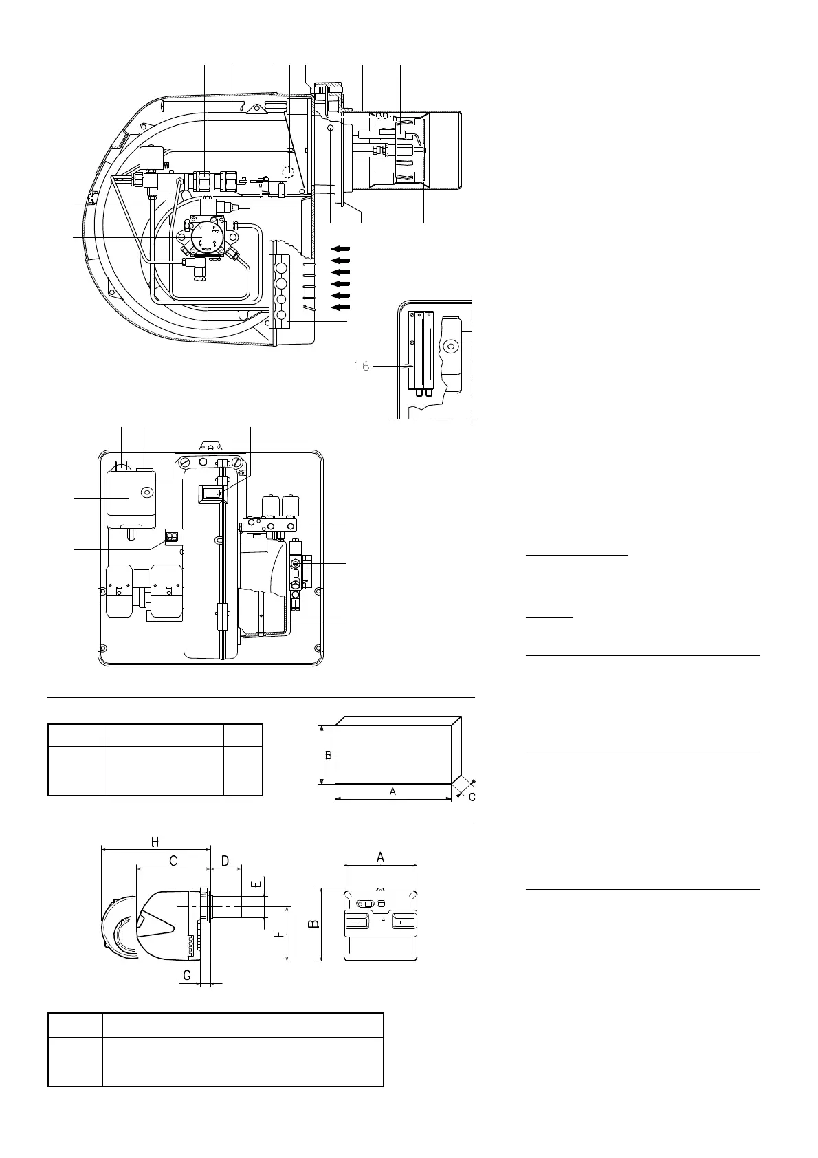 The maximum dimensions of the burner are giv-