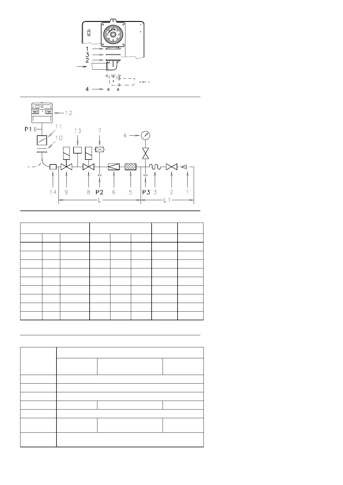 gas 1)(A), mediante la brida 2), la junta 3) y los