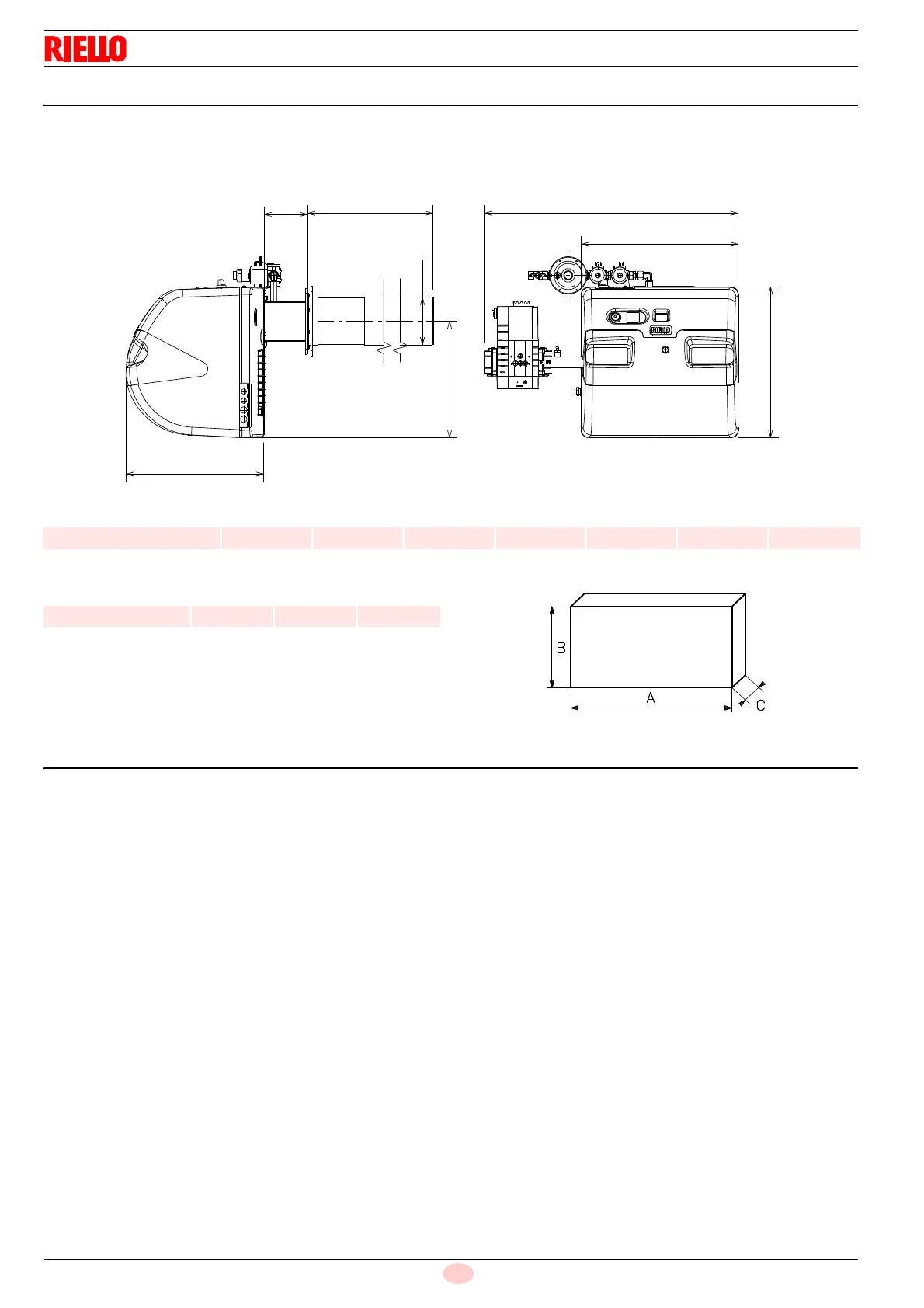 The maximum dimensions of the burner are given in Fig. 1.
