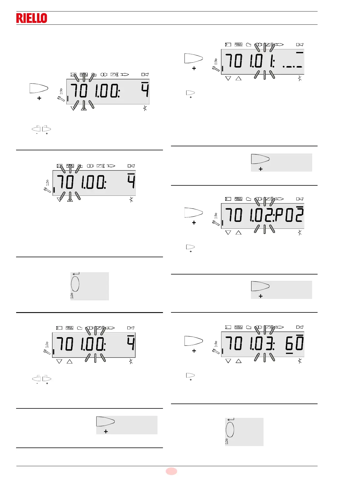 Display: The parameter 701. does not blink, the index 00: blinks,