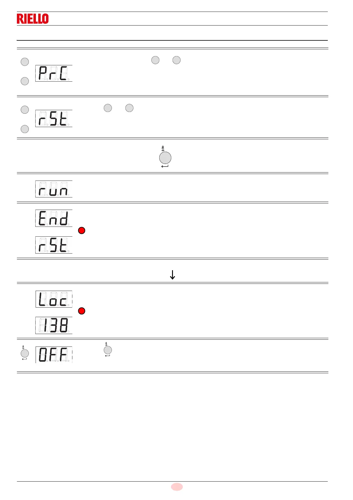 At the end of the reset process, the unit is automatically in a lockout position (LOC 138) and
