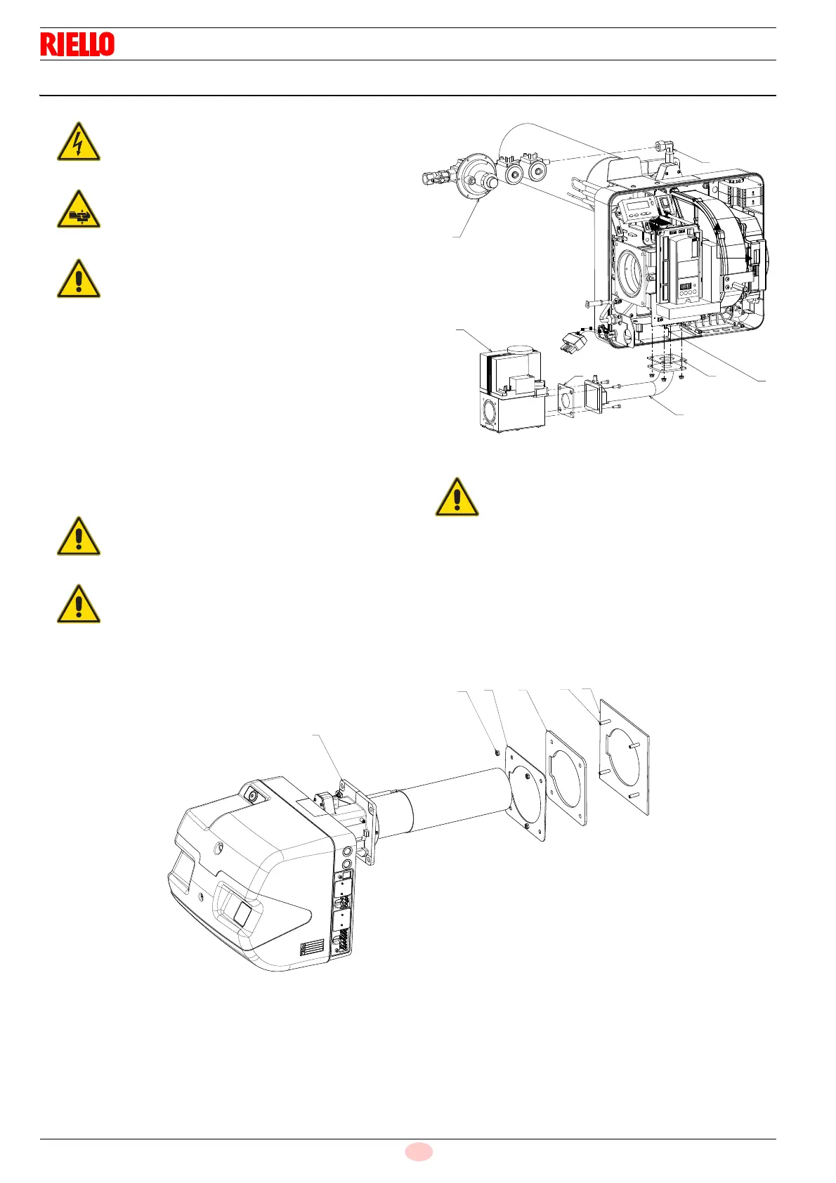 Fix the flange of the burner (Fig. 21) to the boiler plate and
