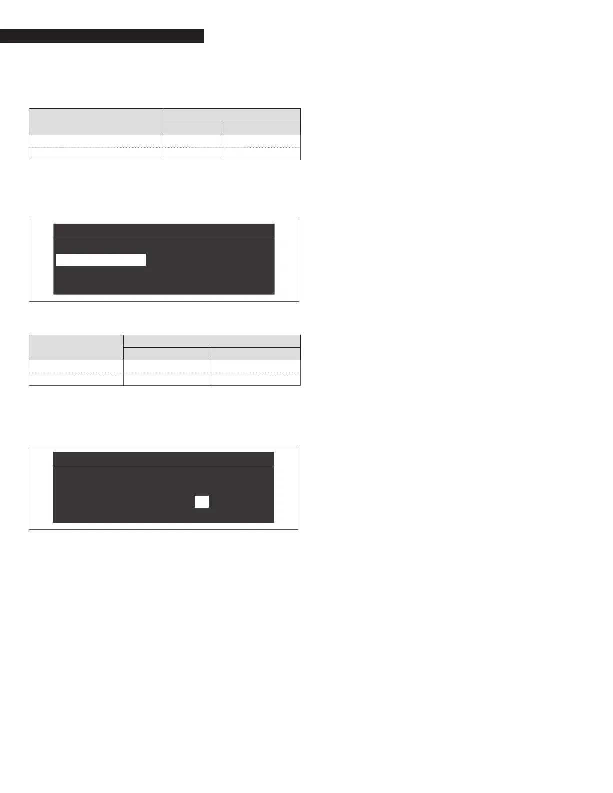 the following table and press the ● key: