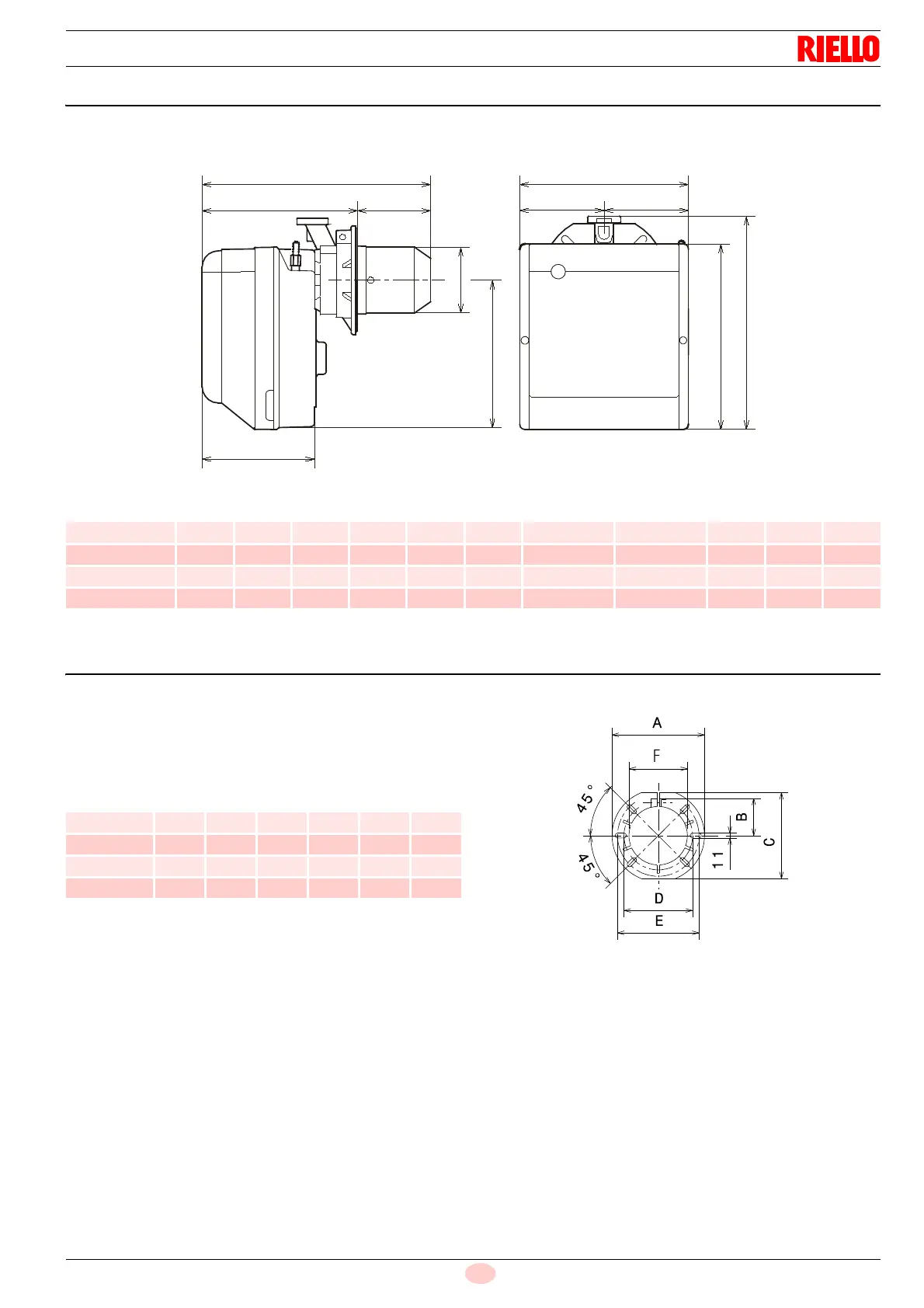 The maximum dimensions of the flange and burner are given in