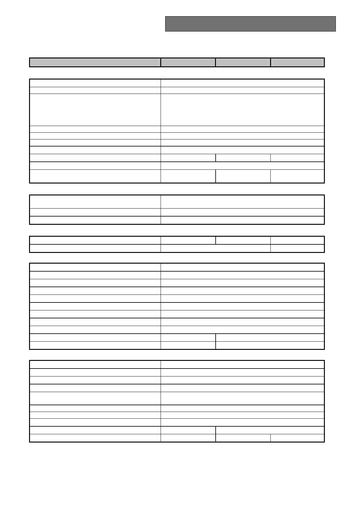 TABELLA DATI TECNICI