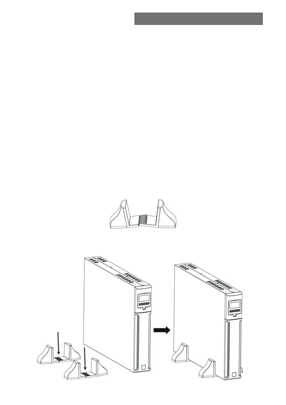 2. Put the UPS in a vertical position and place the supports close to it. Carefully insert the UPS in the