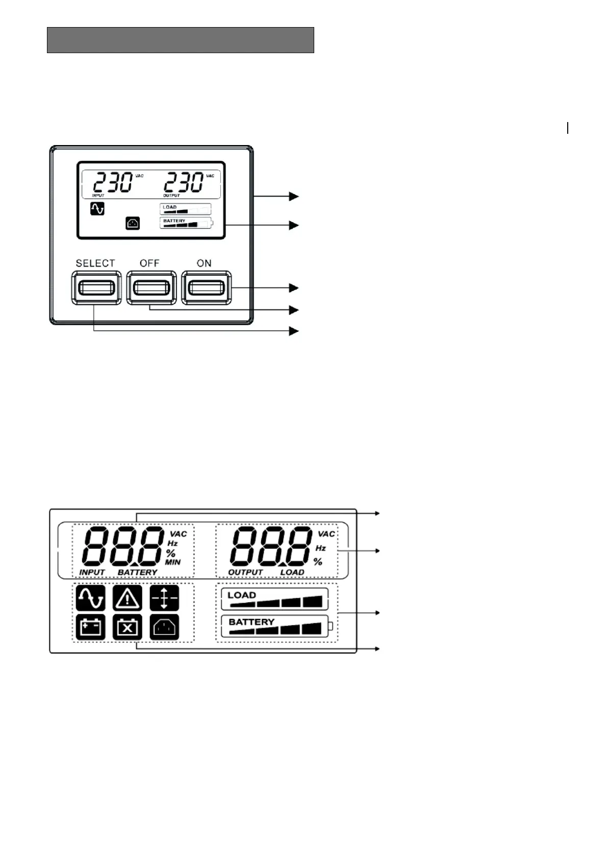 The front panel consists of a display and “ON”, “OFF” and “SELECT” keys.