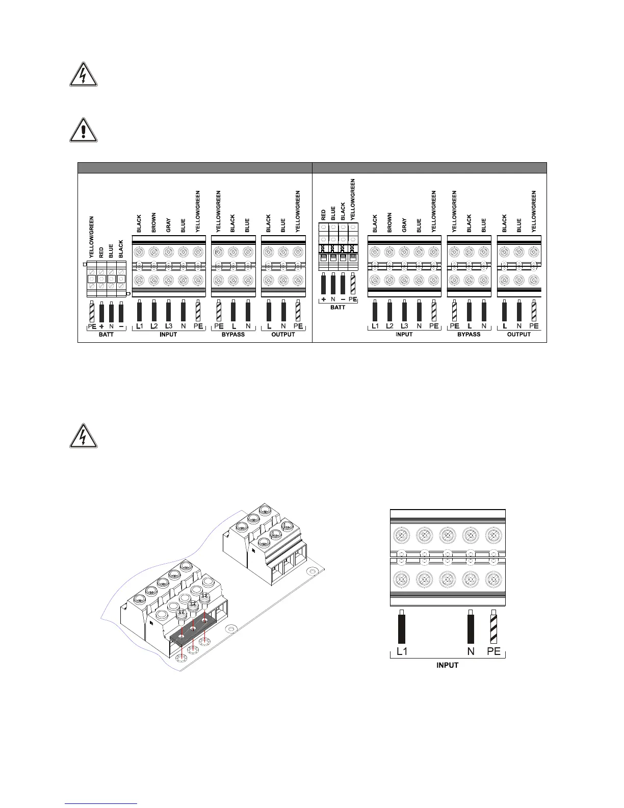 Note: the connections to the UPS terminals remain unchanged with respect to those indicated in the foregoing paragraphs.