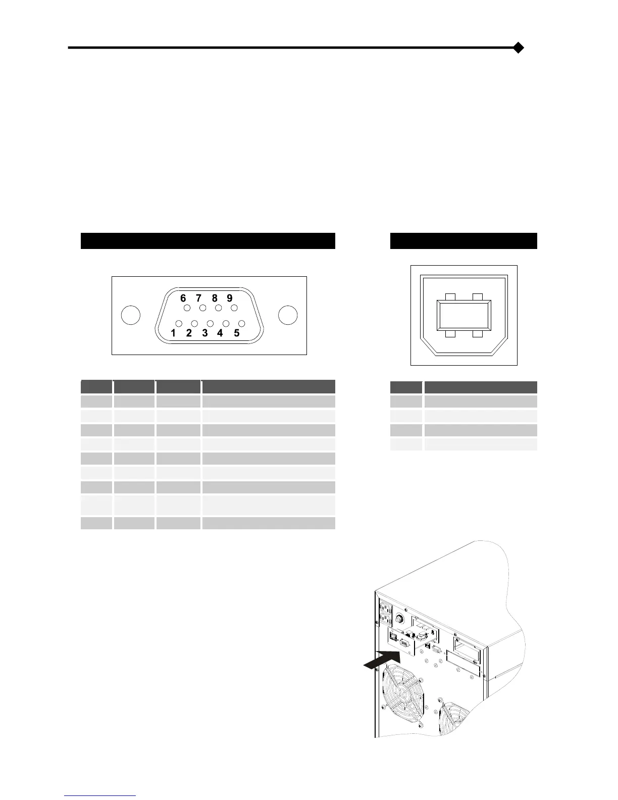 The UPS is supplied with the following communication ports (see “Views of the UPS):