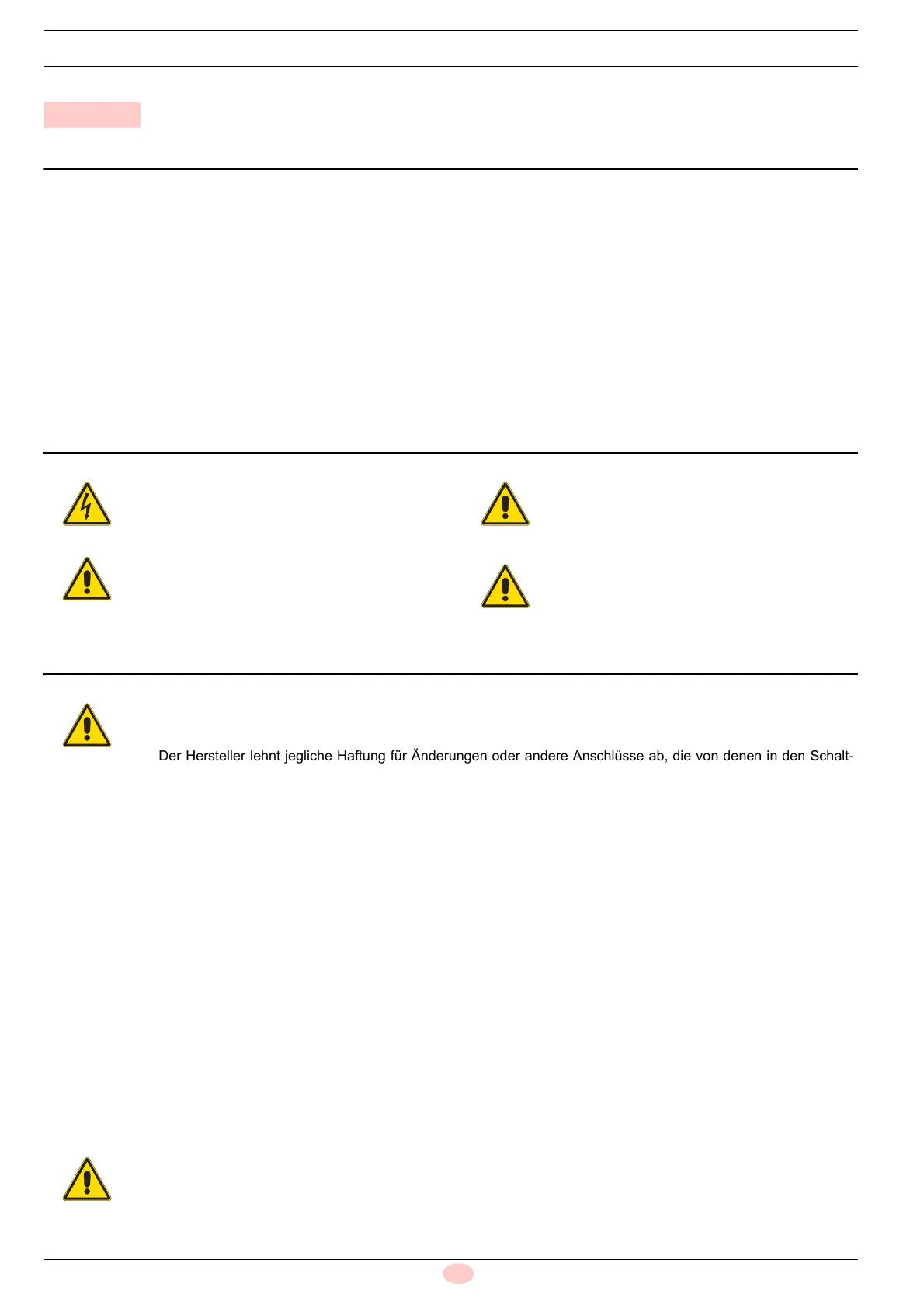 Der Hersteller lehnt jegliche Haftung für Änderungen oder andere Anschlüsse ab, die von denen in den Schalt-