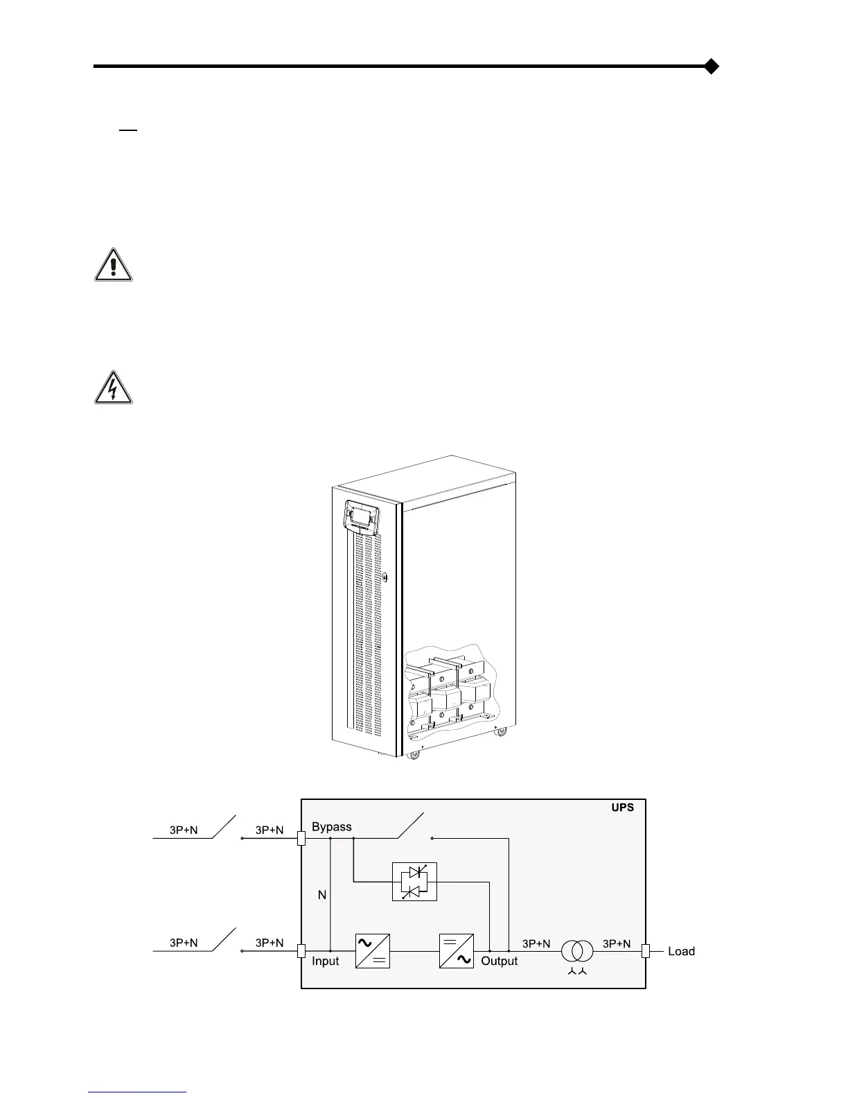 the load; the personnel operating inside the UPS should be aware that under these conditions some part are