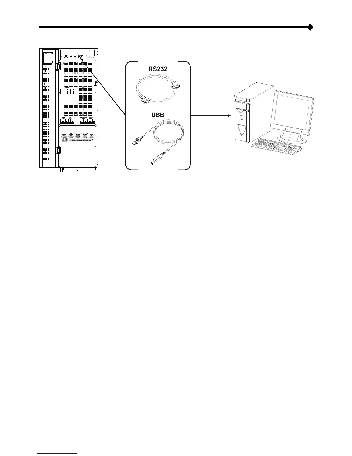 Connect the RS232 communication port of the UPS to a COM communication port of the PC via the serial cable
