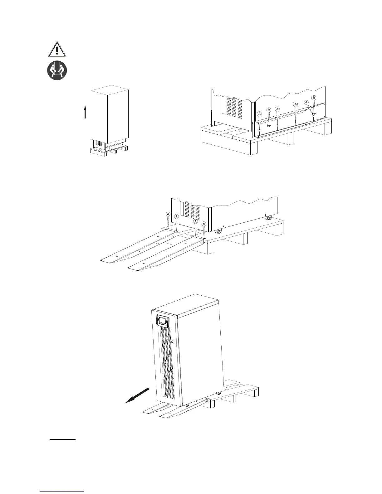 Remove the 2 brackets securing the UPS to the pallet by