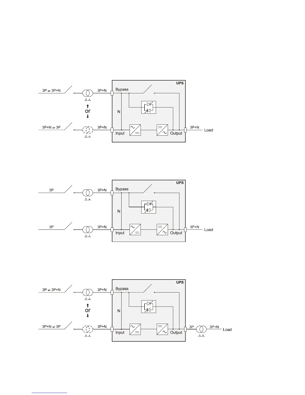 Note: The neutral of the input line and that of the bypass are commoned inside the equipment, therefore they must refer to the