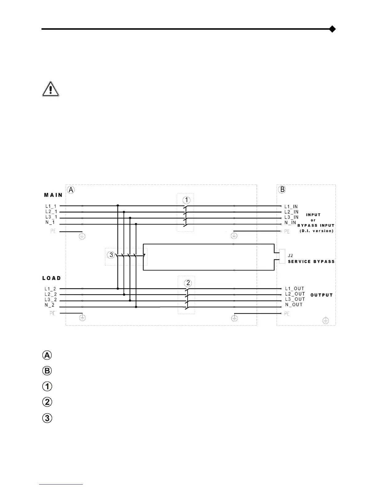 SERVICE BYPASS switch: isolator compliant with the indications given in the "UPS internal protections" section,