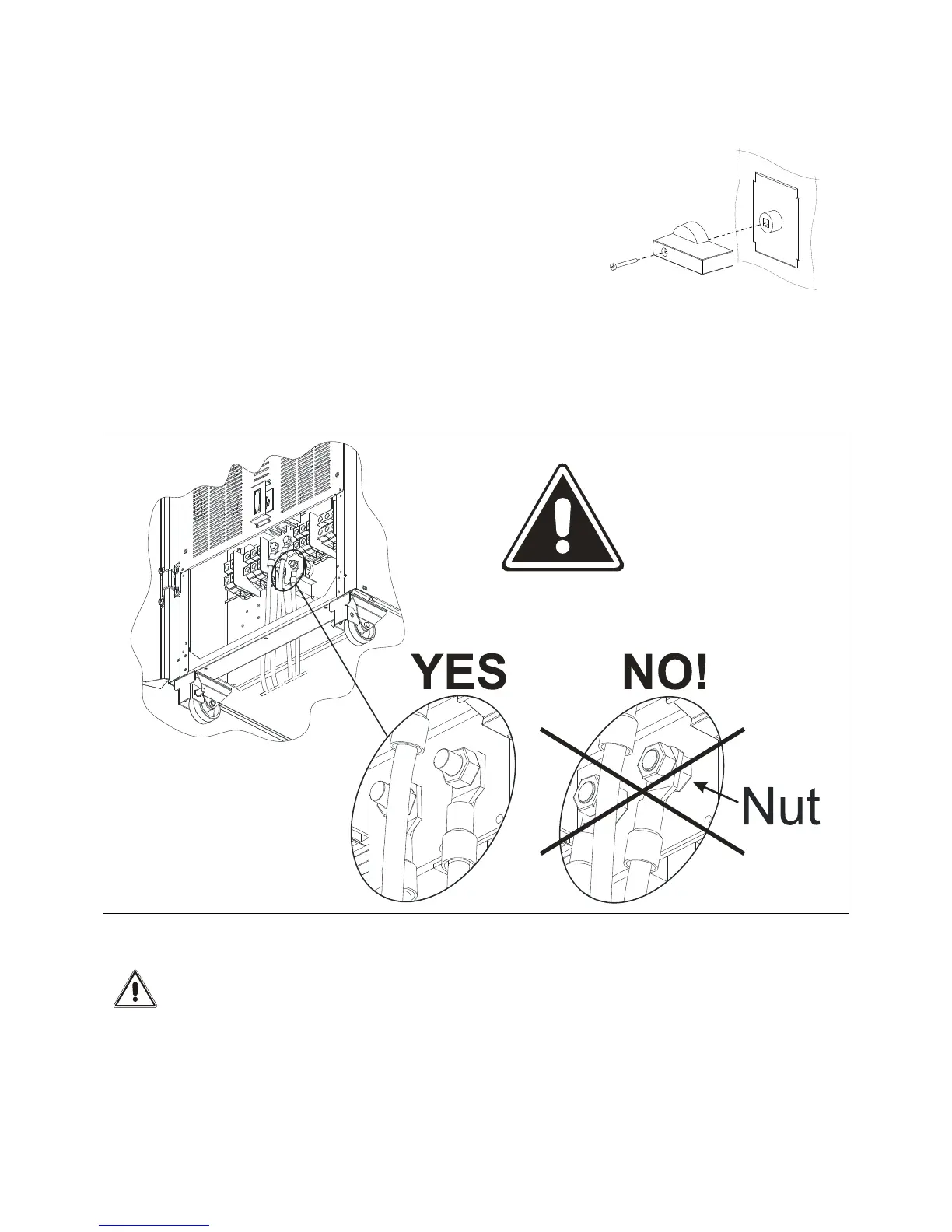 Depending on model: connect the input, bypass (if present), output and battery cables to the terminals/bars; follow the