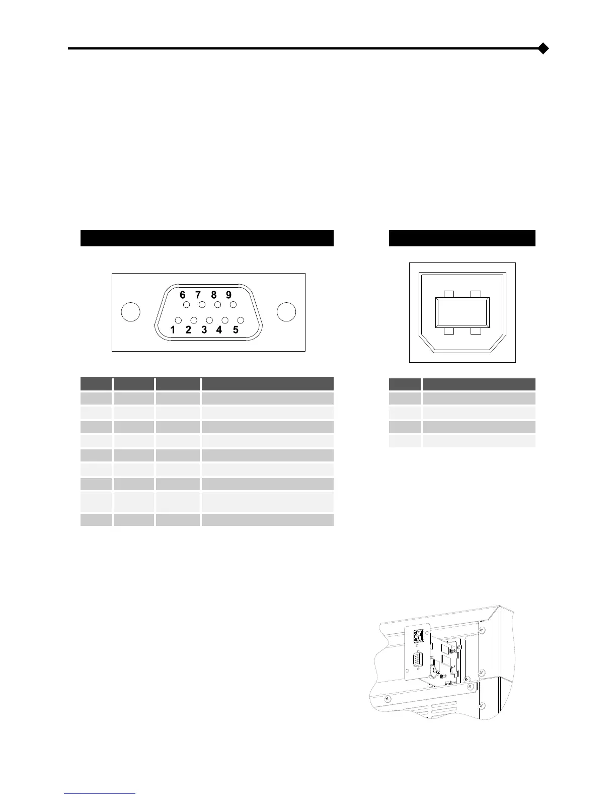 The following communication ports are present on the upper part of the UPS behind the door (see "Communications area view"):