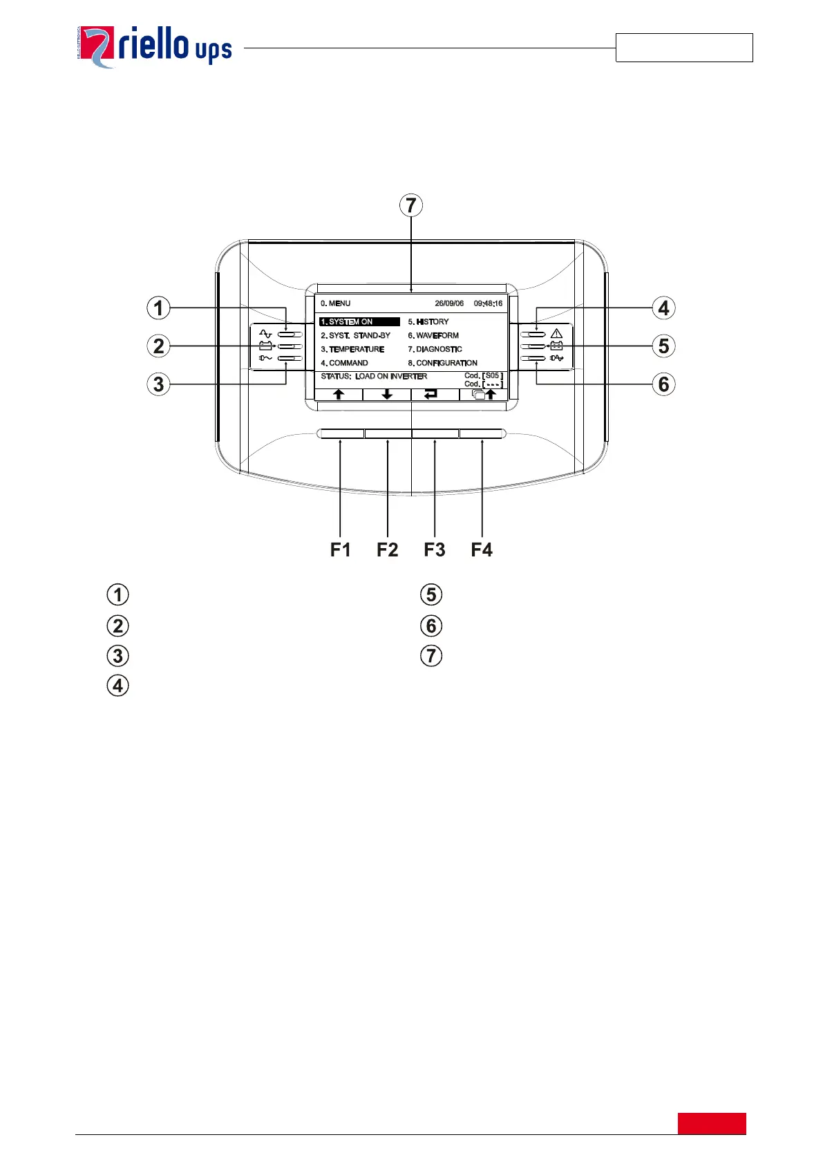 of the UPS operational state. From the control panel the user can switch the UPS on/off, read electrical