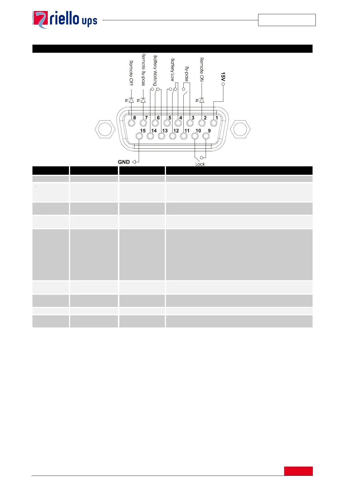NOTE: The diagram shows the contacts present inside the UPS that can provide a maximum current of 0,5 A at
