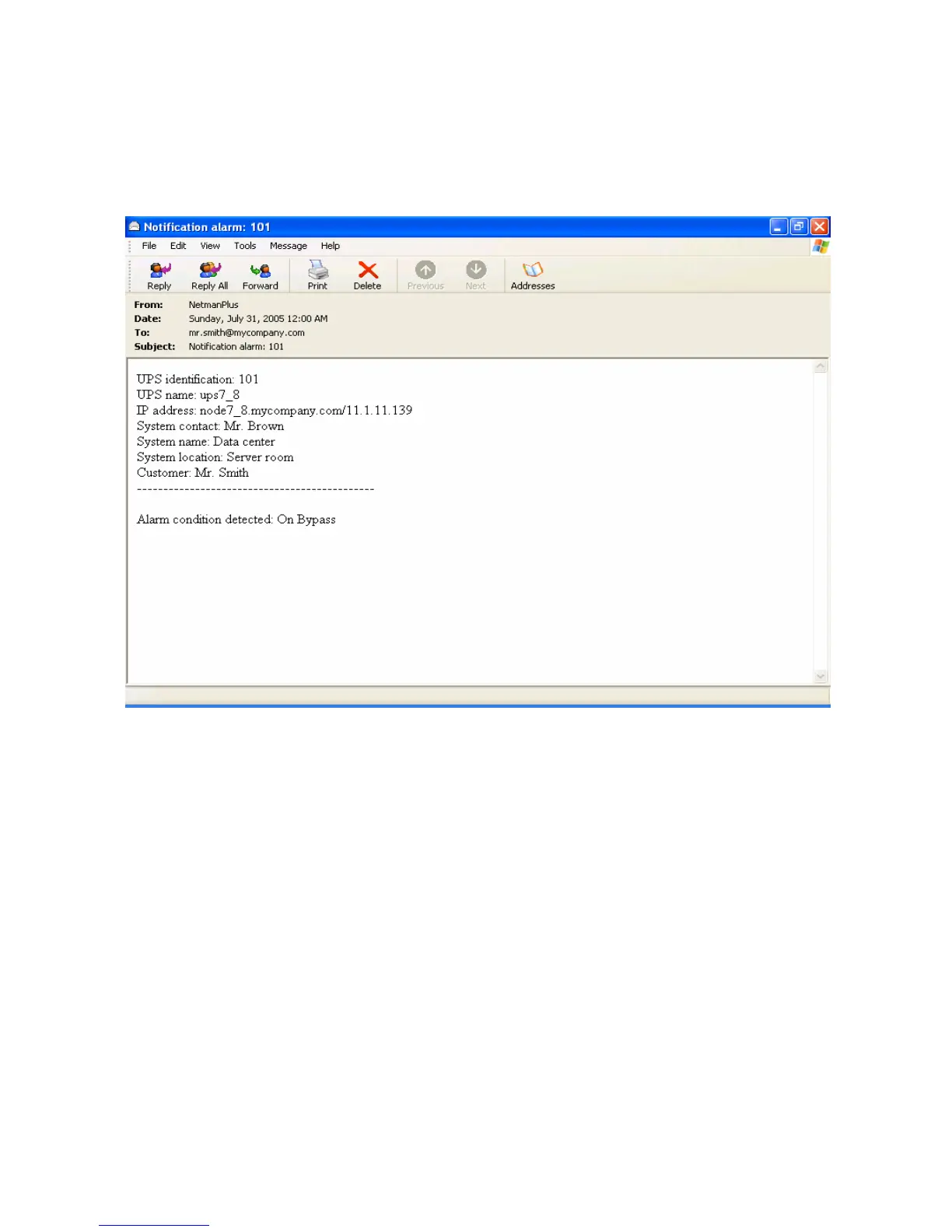 NetMan plus can send a notification e-mail if one or more alarm conditions occur. The e-mails can