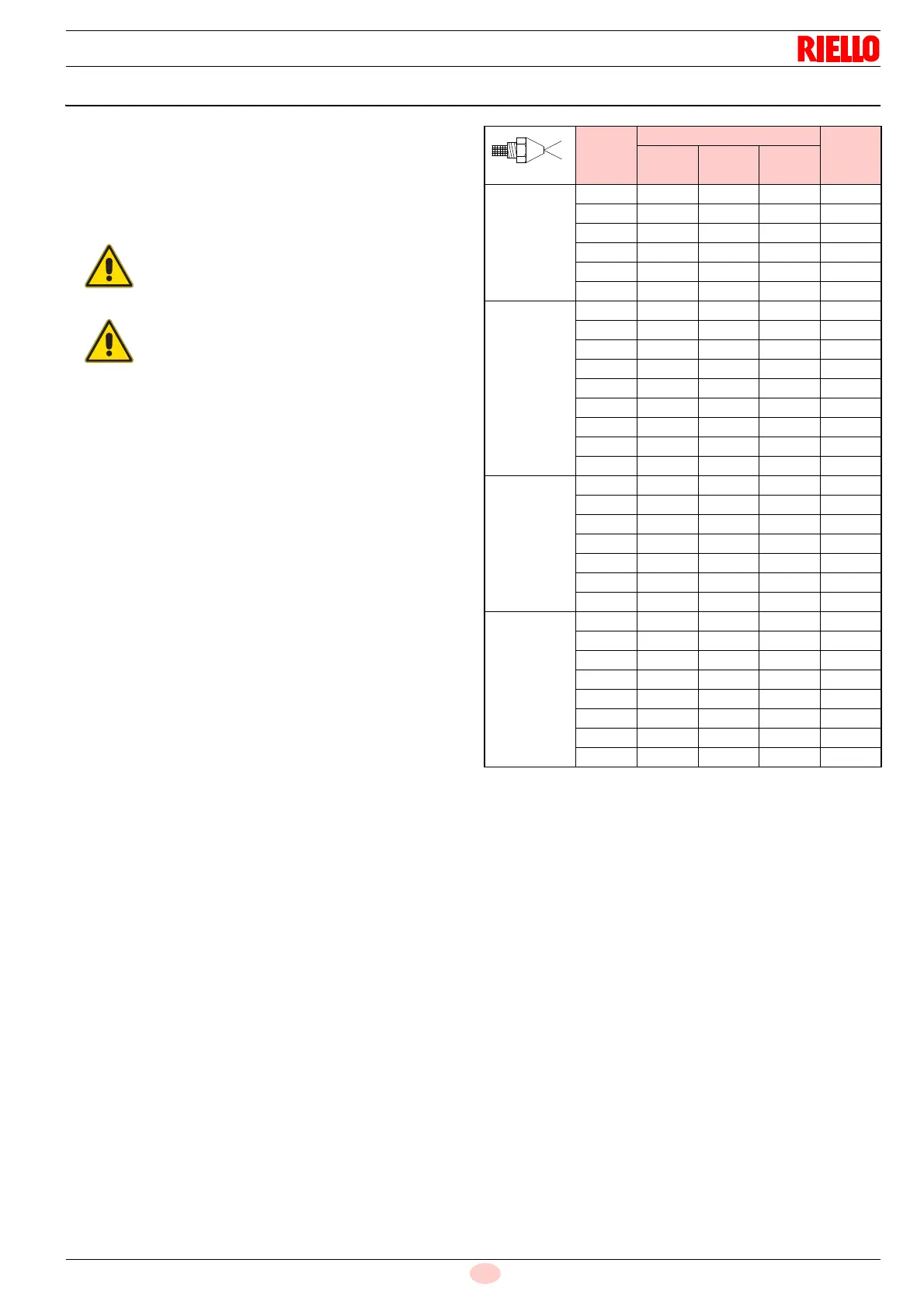 and/or alternative nozzles specified by Riello in the Instruction