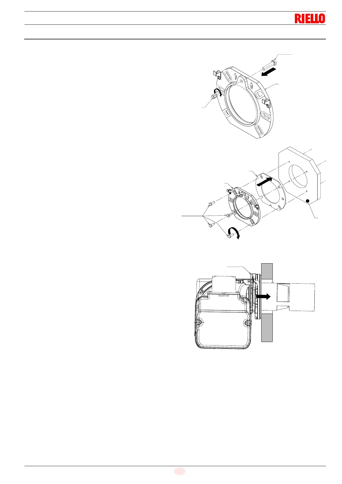Fix the flange 5) to the boiler door 4) using the screws 6)