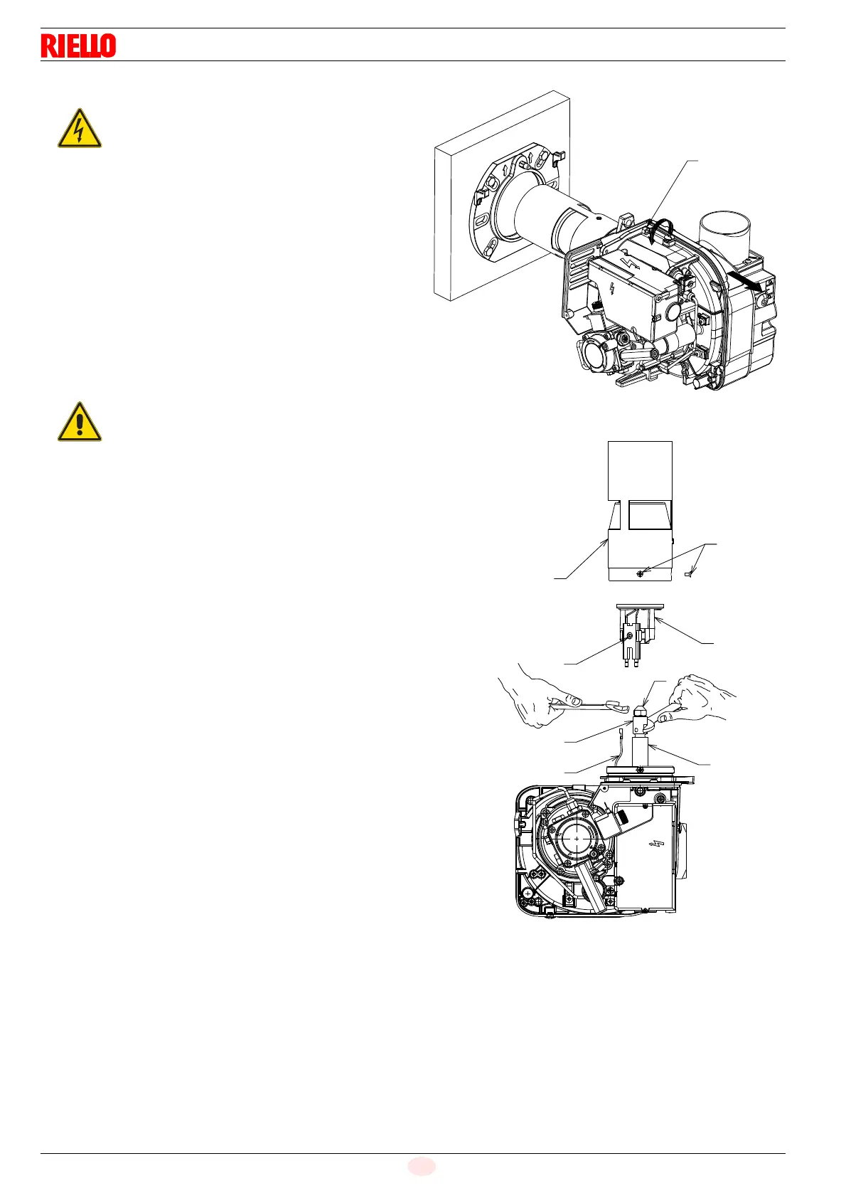 loosen the nut 1) and take the burner out of the boiler.