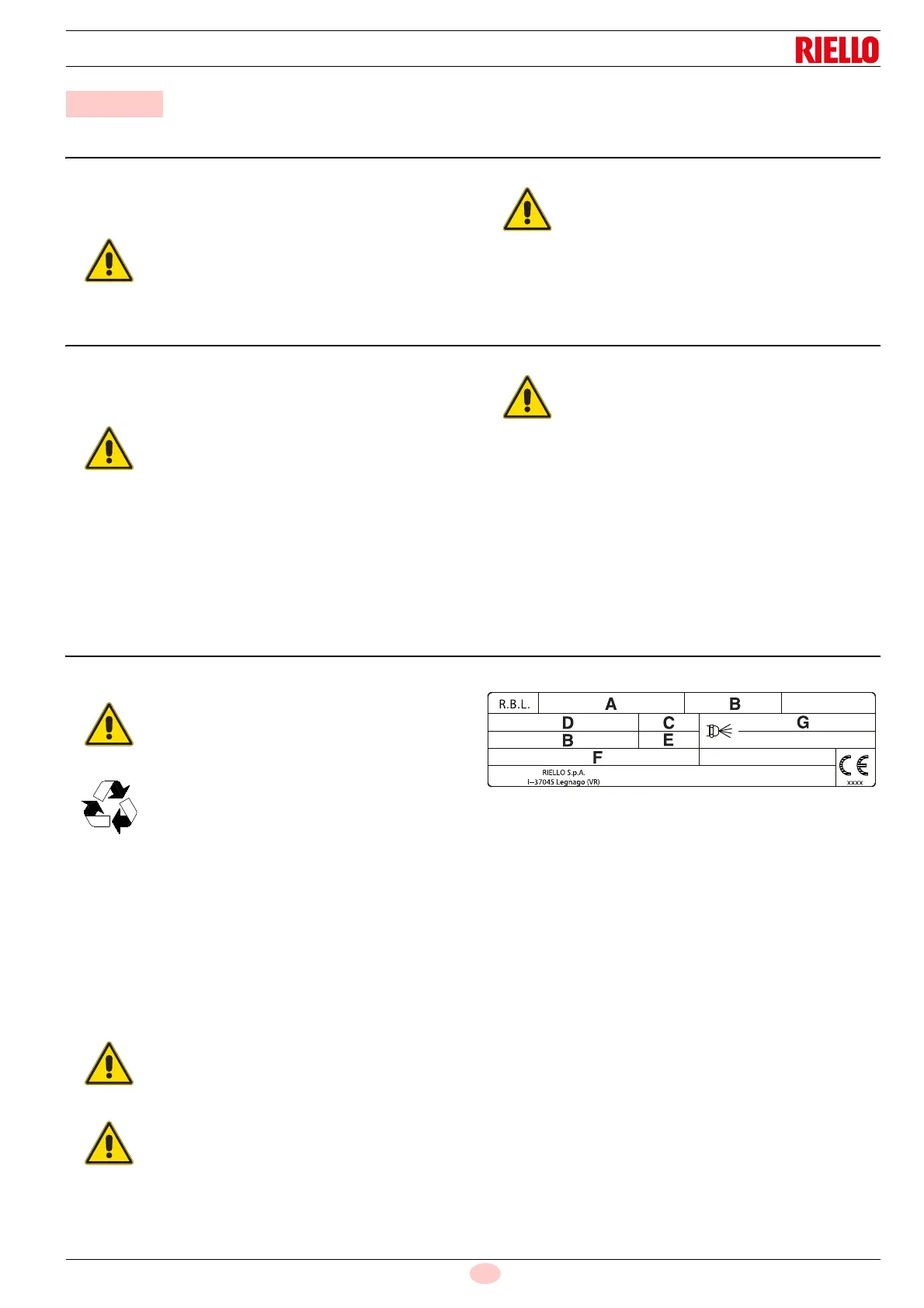 Check the identification label of the burner, showing: