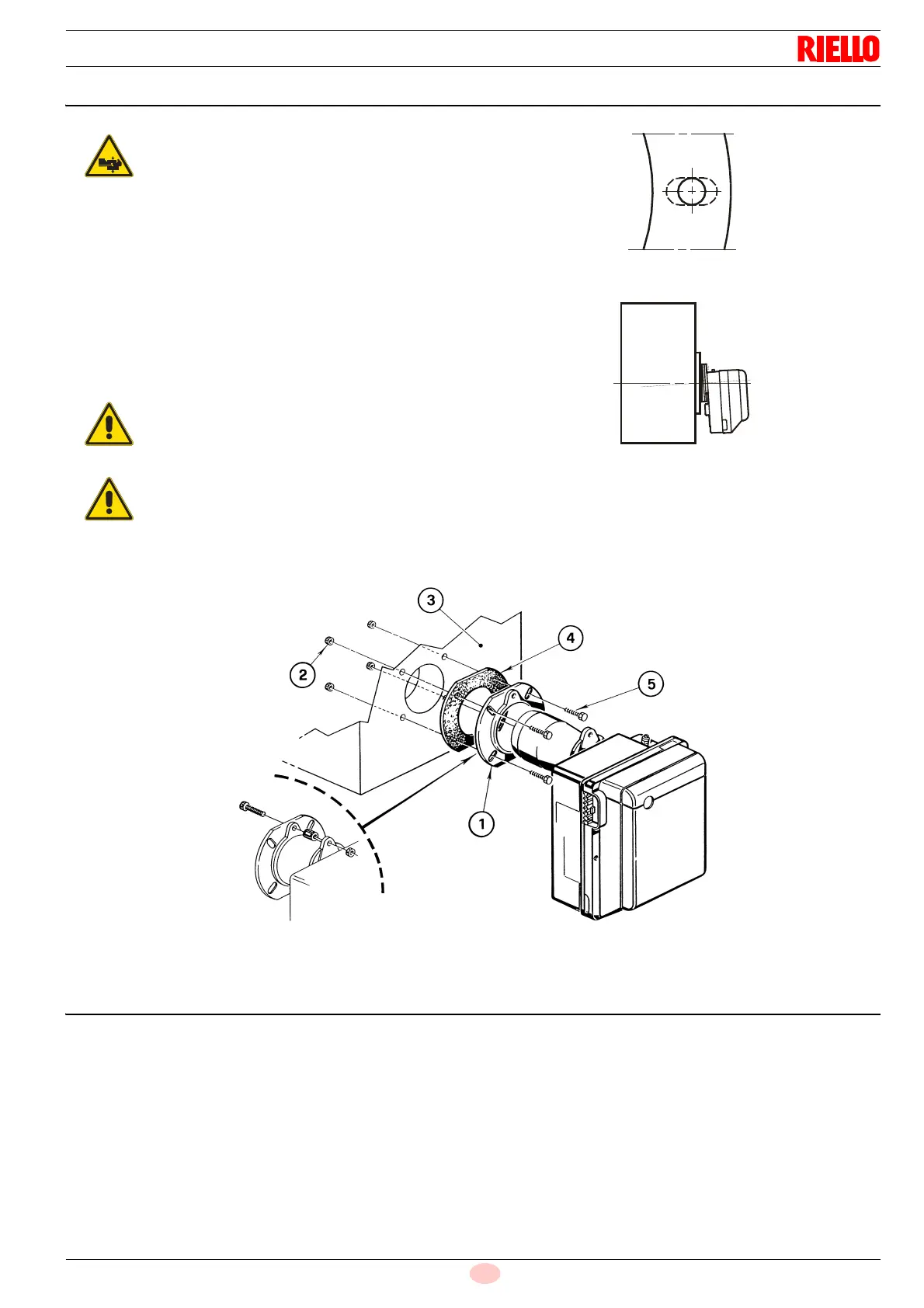 Fix the flange 1) to the boiler door 3) using screws 5) and (if