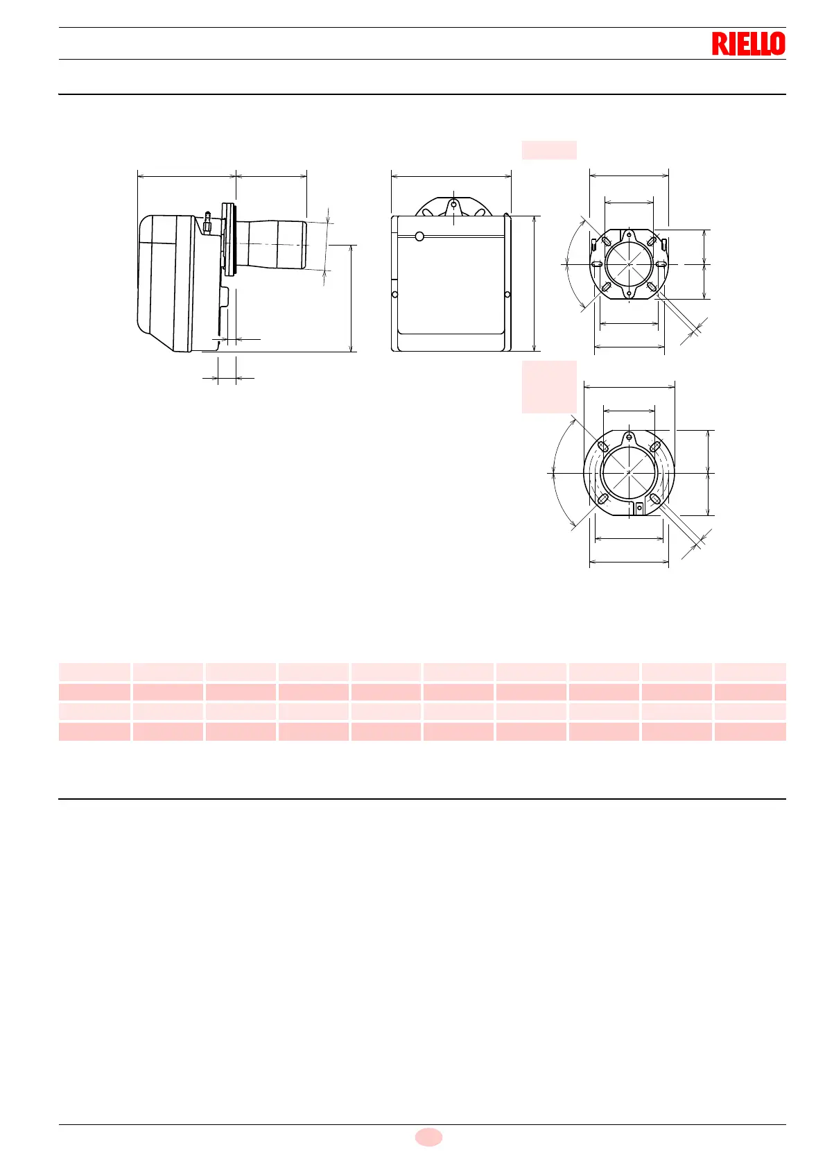 Las dimensiones del quemador y de la brida se indican en la Fig. 1.