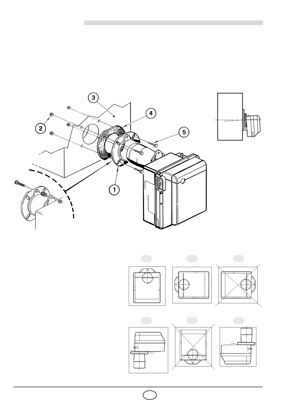 Fix the flange (1) to the heat generator door (3) using screws (5) and (if necessary) the nuts (2) inter-