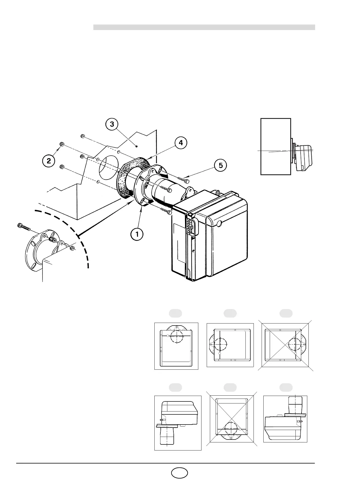 Fijar a la puerta del generador de calor (3) la brida (1) mediante los tornillos (5) y (si es necesario) las