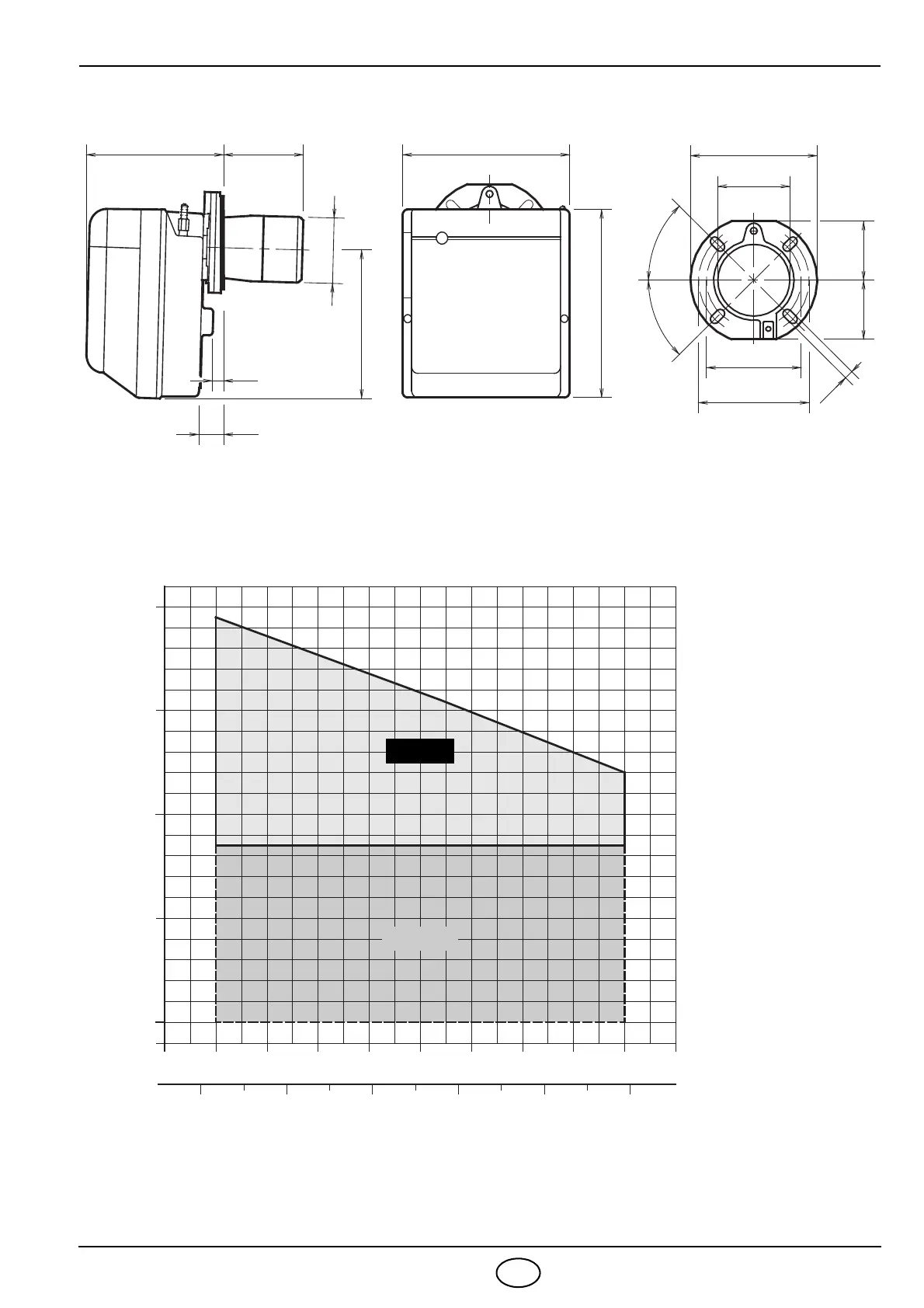 Riello RG3F - Abmessungen; Arbeitsfeld