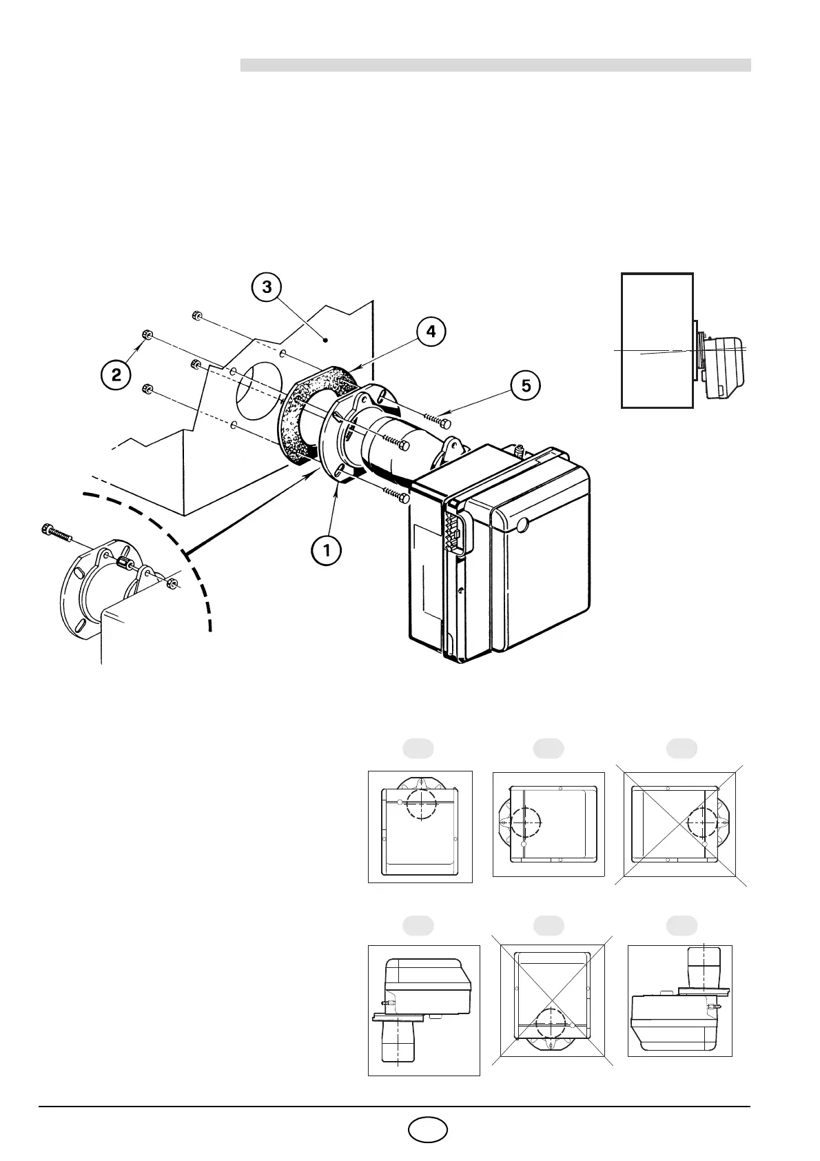 y Fix the flange (1) to the heat generator door (3) using screws (5) and (if necessary) the nuts (2) inter-