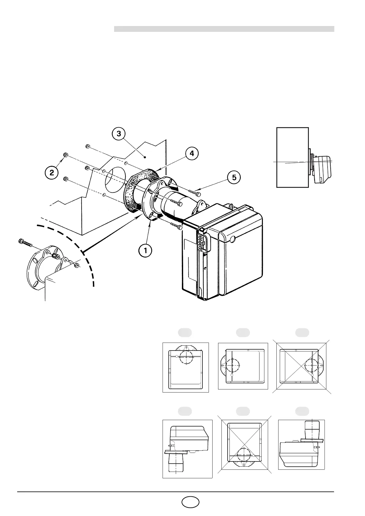 y Fissare alla portina del generatore (3) la flangia (1) mediante le viti (5) e (se necessario) i dadi (2) inter-