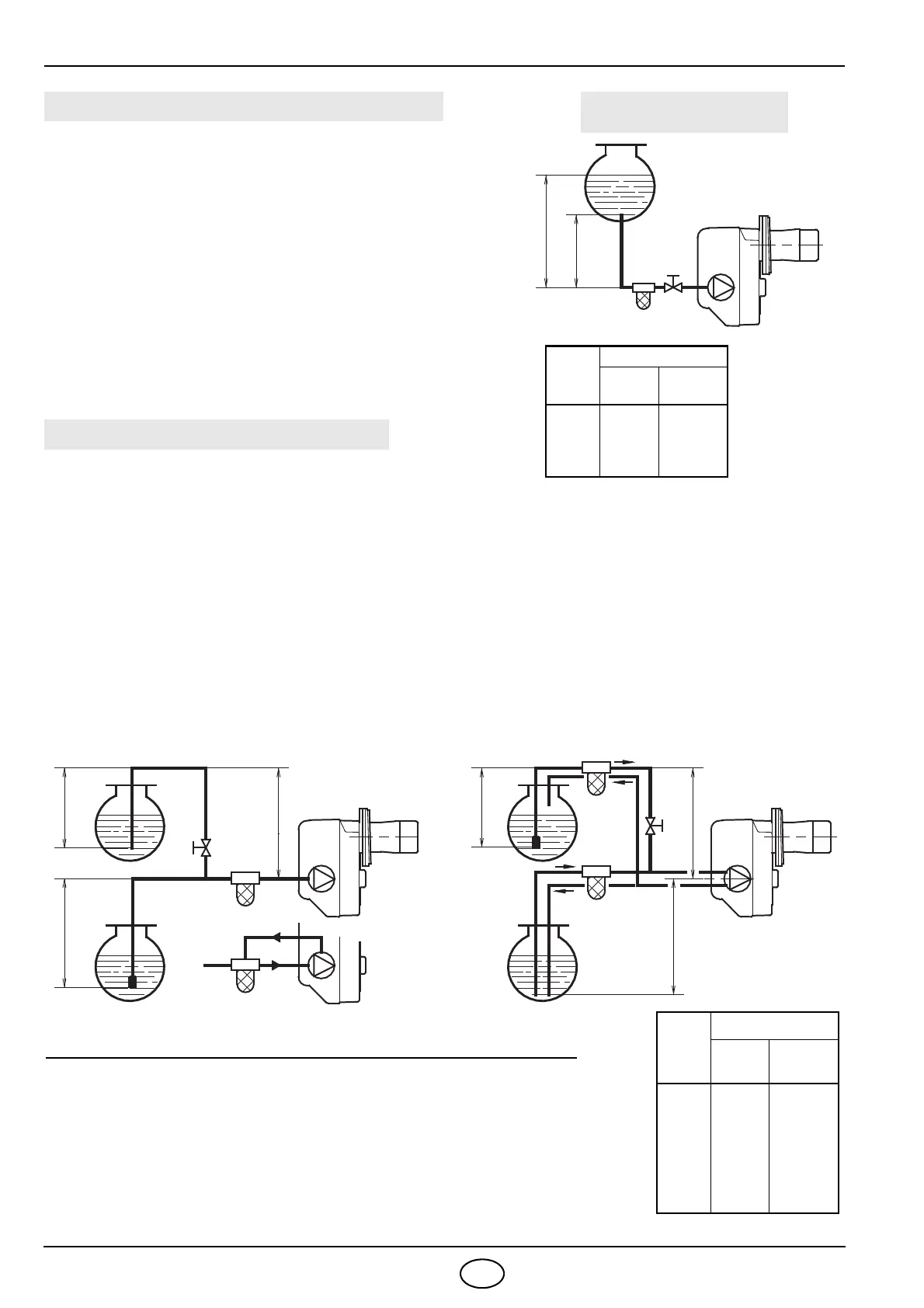 Negli impianti di Fig. 8 e 9, la tabella riporta le lunghezze massime indicative per la linea di alimentazione in