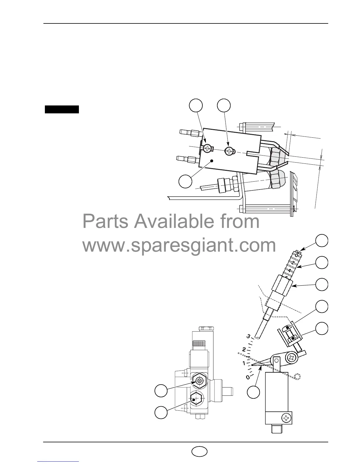 screw (6) until the set-point marked on the regulating rod (7) is level with the outside plane of the nozzles-