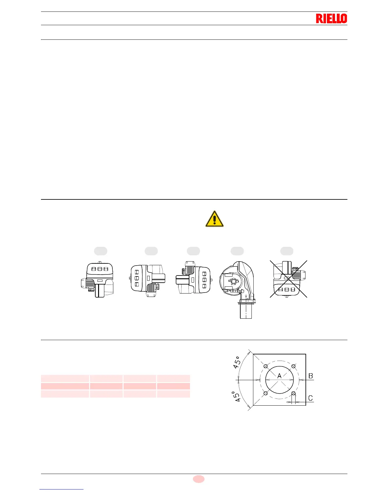The burner is designed to work only in the positions 1, 2, 3 and 4.