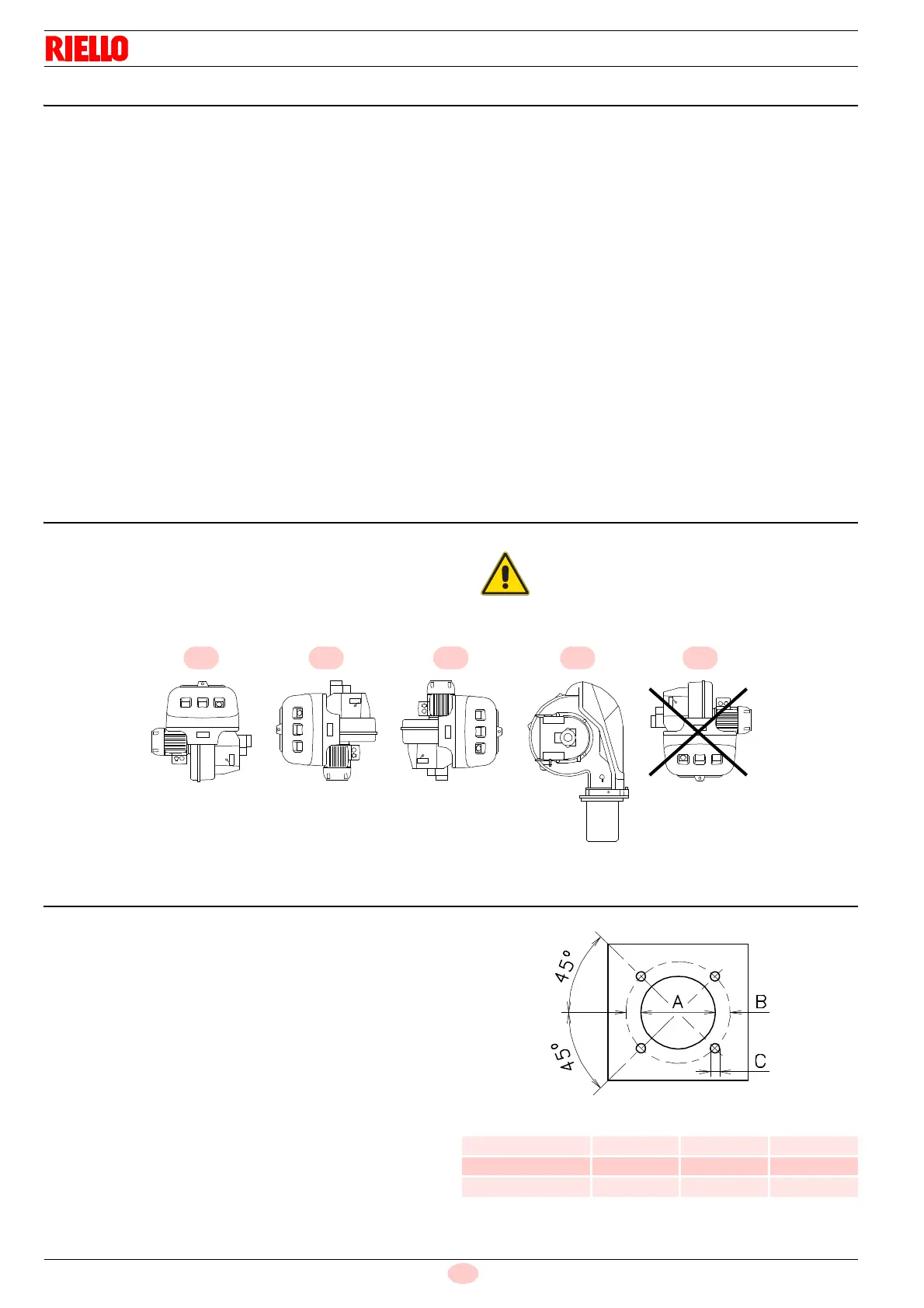The burner is designed to work only in the positions 1, 2, 3 and 4.