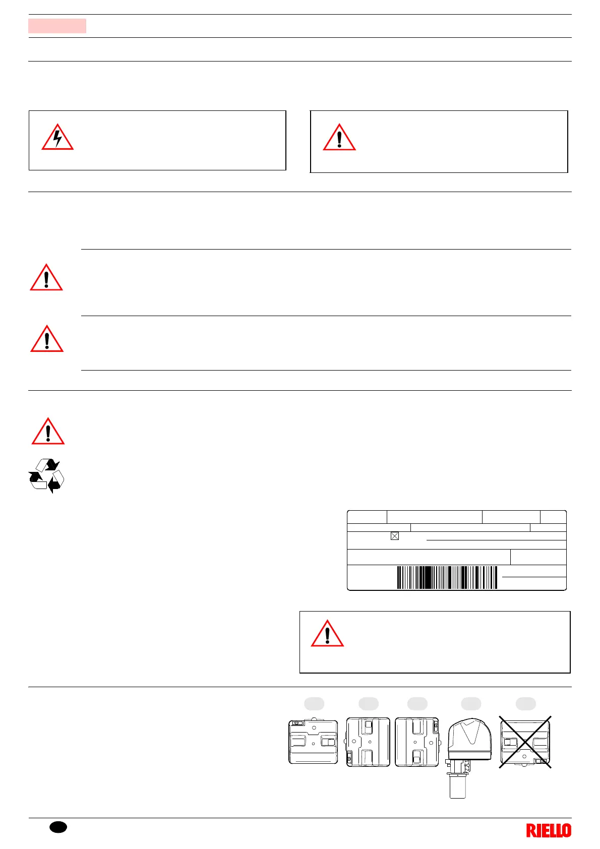 After positioning the burner near the installation point, correctly dispose of all residual packaging, separating the various