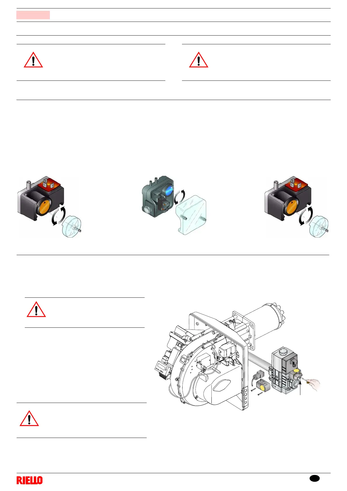 Adjust the pressure switch for the valve leak detection control device (PVP kit), if present, according to the instructions supplied with the kit itself.
