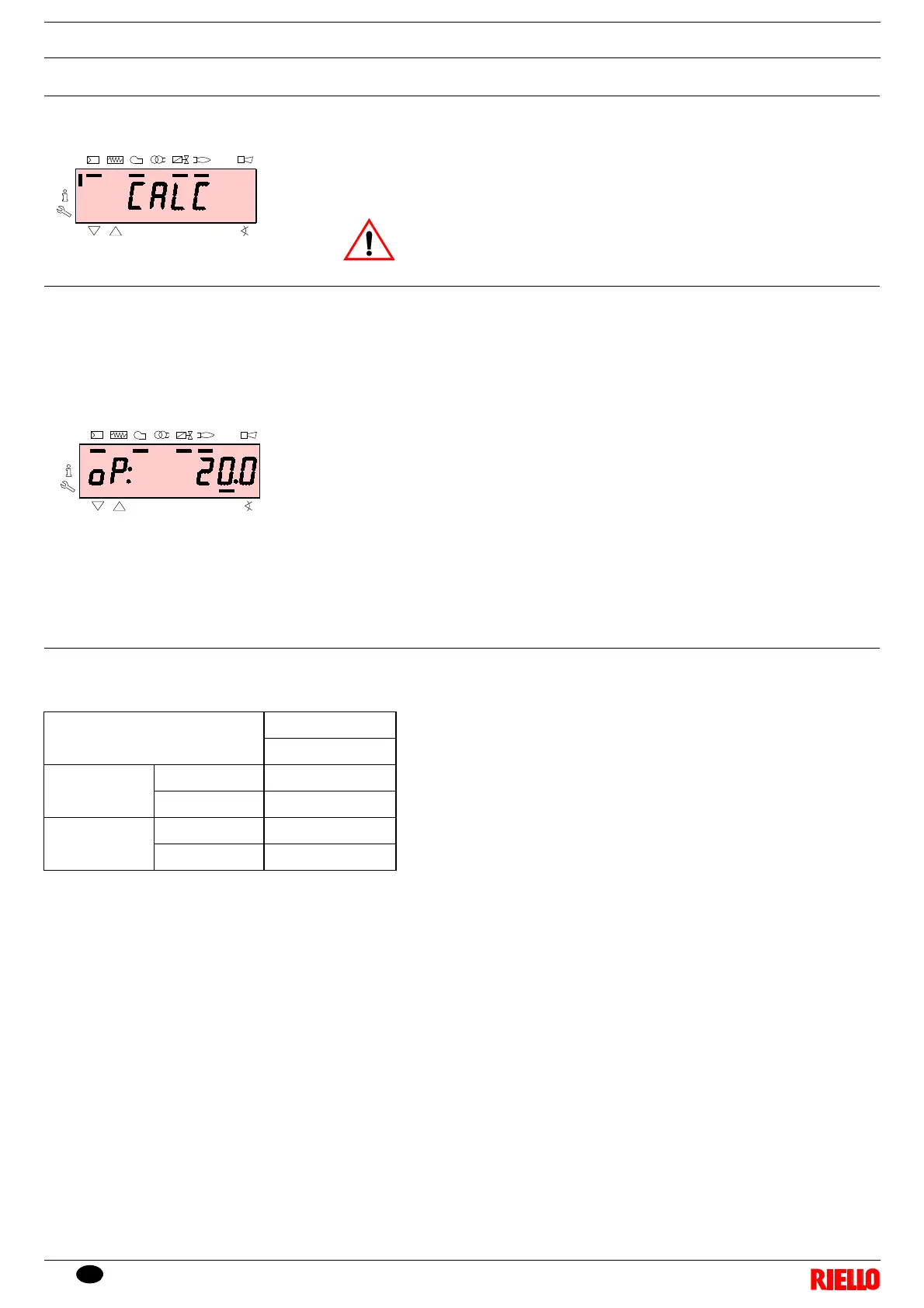 After adjusting point “P1”, press the key “+”: the display shows “CALC” for a few