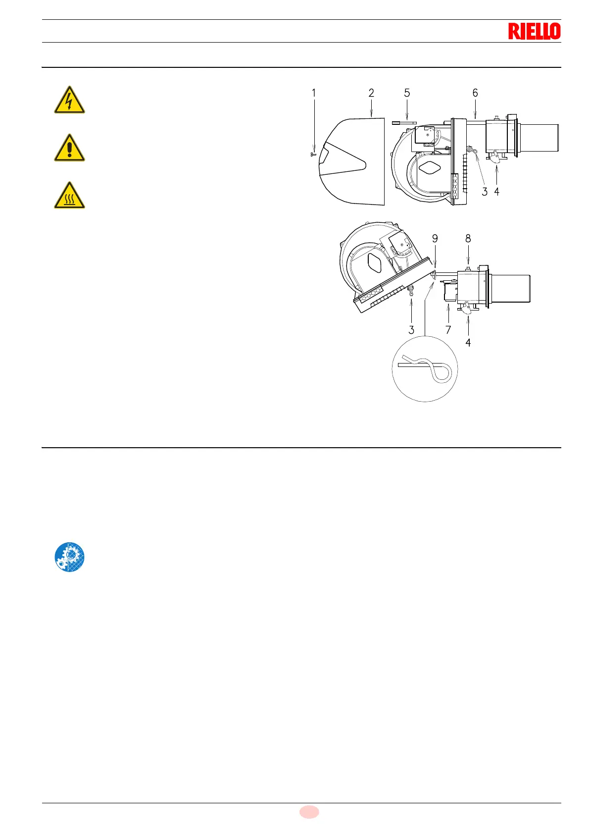 Turn it as indicated in the diagram, and insert the split pin 9)